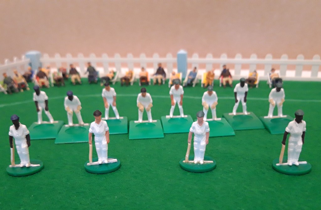 Left to right India, New Zealand, South Africa and Pakistan. The relatively low sales of cricket, as opposed to football and even rugby, meant Subbuteo was reluctant to expand the number of teams in the official range.